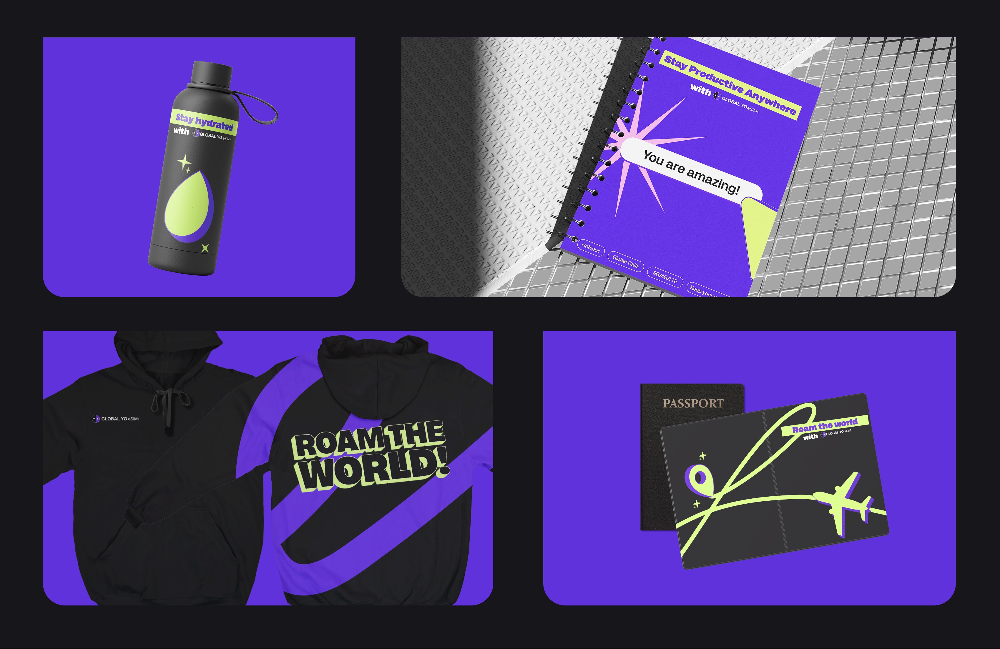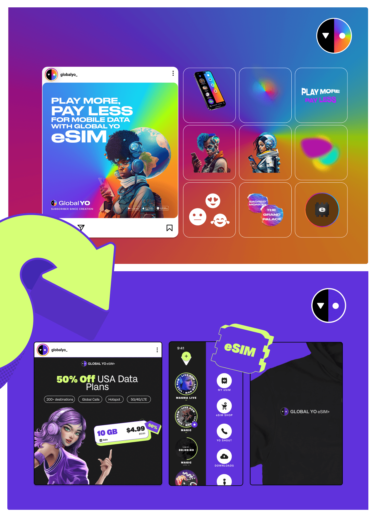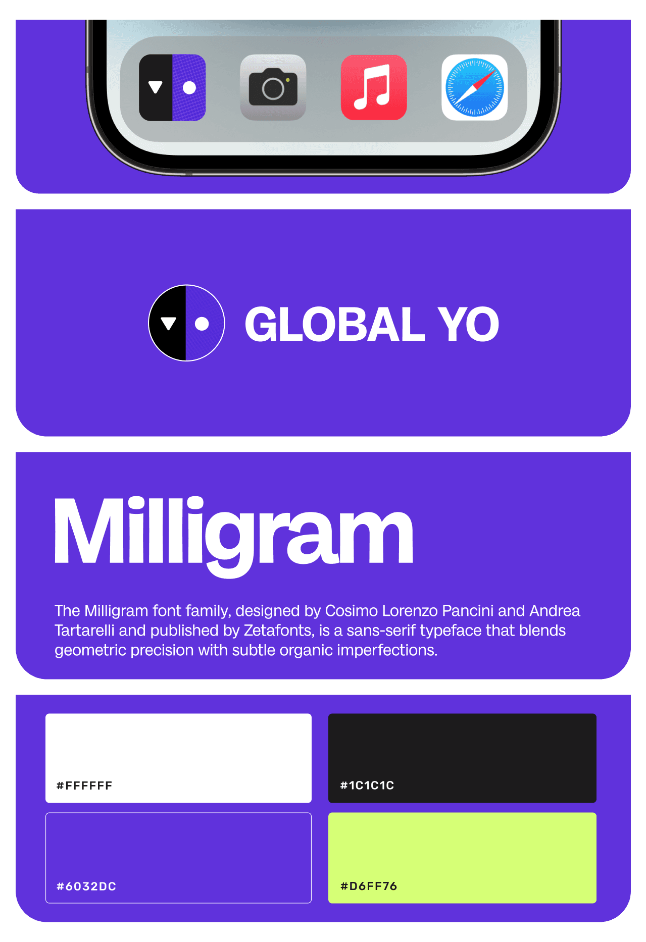 Replace a visually heavy, inconsistent “gradient” look with one lightweight system that scales worldwide while keeping Global YO’s irreverent, youth‑first attitude.